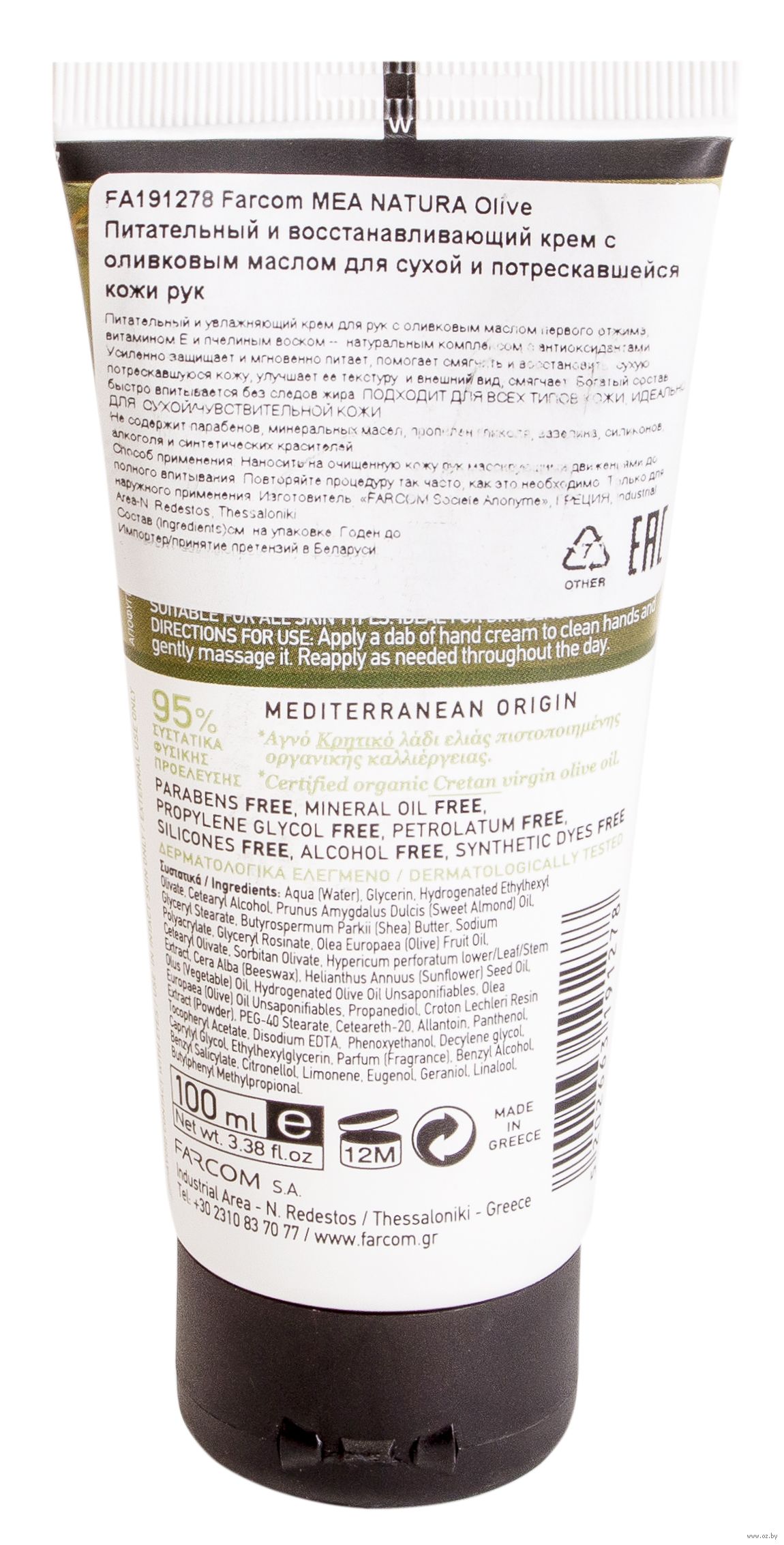 Зимой после воды у меня очень сушит кожу рук. доходит даже до трещин на коже на фалангах пальцев. Это единственный крем, который мне помог. потому что у него есть эффект накопления, в то время как большинство кремов для рук действуют до первого мытья рук. консистенция нежная. не очень густая. крем совершенно нежирный. моментально впитывается и не оставляет ни пленки, ни ощущения жирности. единственный минус для меня - запах. он нежный, травяной, чуть сладковатый (на оливковый совсем не похож), но при этом очень навязчивый и долго не улетучивается. Но приходится с этим мириться из-за эффективности данного крема.