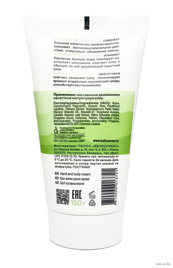 Крем для рук и тела эффективно смягчает, увлажняет кожу, минимизирует вредные воздействия окружающей среды, способствует восстановлению.