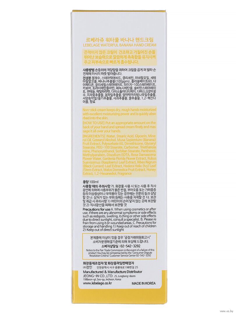 Экстракт банана и питательные ингредиенты в увлажняющем креме от корейского бренда Lebelage эффективно смягчают и успокаивают кожу рук. Крем оказывает регенерирующее, увлажняющее, защитное действие, смягчает огрубевшую кожу, разглаживает ее и осветляет пигментацию, заметно освежает и омолаживает, устраняет сухость и шелушение, ускоряет процесс заживления повреждений.