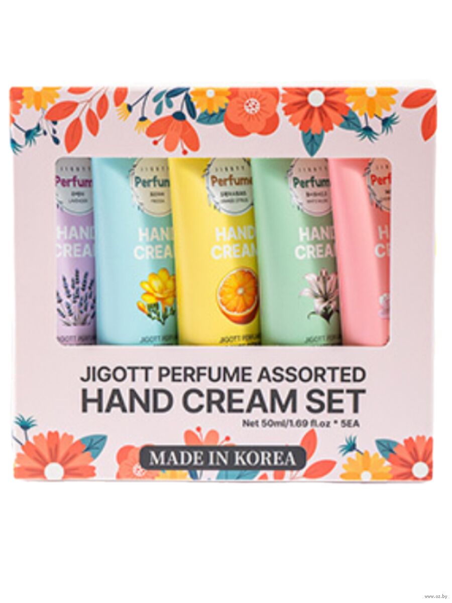 Jigott Набор парфюмированных кремов для рук Perfume Assorted Hand Cream Set Of 5 (50 мл x 5) – это не просто уход, это прикосновение роскоши, дарящее коже рук шелковистую мягкость и обволакивающее ее тончайшей ароматической вуалью.