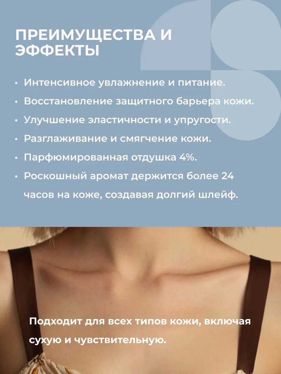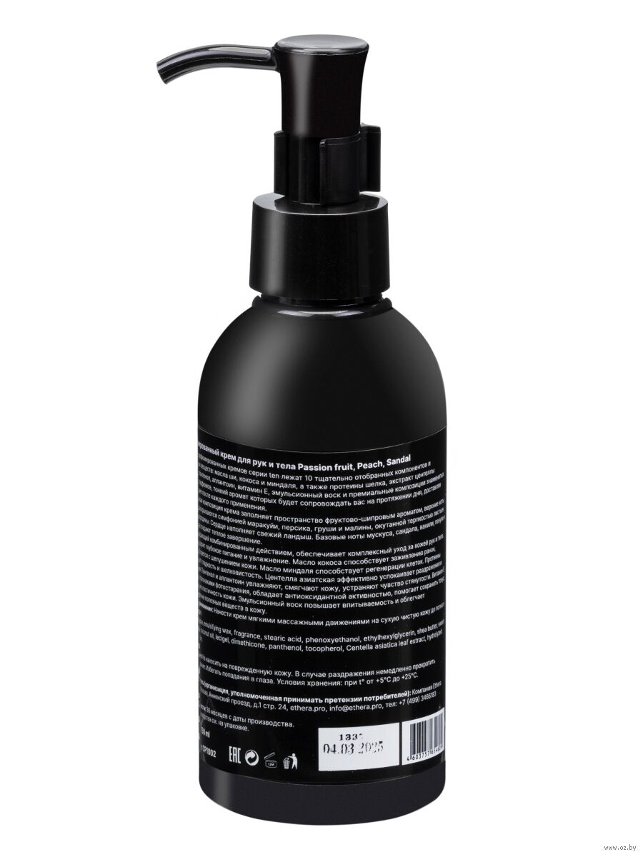 В основе парфюмированных кремов серии ten лежат 10 тщательно отобранных компонентов и питательных веществ: масла ши, кокоса и миндаля, а также протеины шелка, экстракт центеллы азиатской, пантенол, аллантоин, витамин Е, эмульсионный воск и премиальные композиции знаменитых люксовых парфюмов, тонкий аромат которых будет сопровождать вас на протяжении дня, доставляя удовольствие после каждого применения.