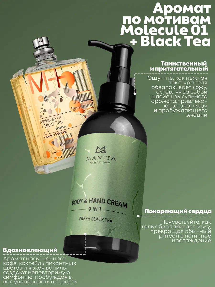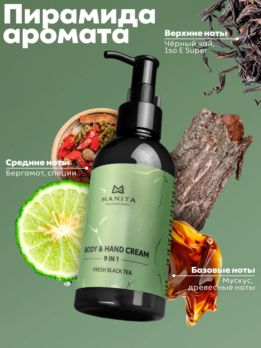 Крем для рук и тела MANITA PROFESSIONAL с ароматом свежего черного чая объемом 150 мл обеспечивает глубокое увлажнение и питание кожи. Его легкая текстура быстро впитывается, не оставляя жирной пленки, придавая мягкость и гладкость.