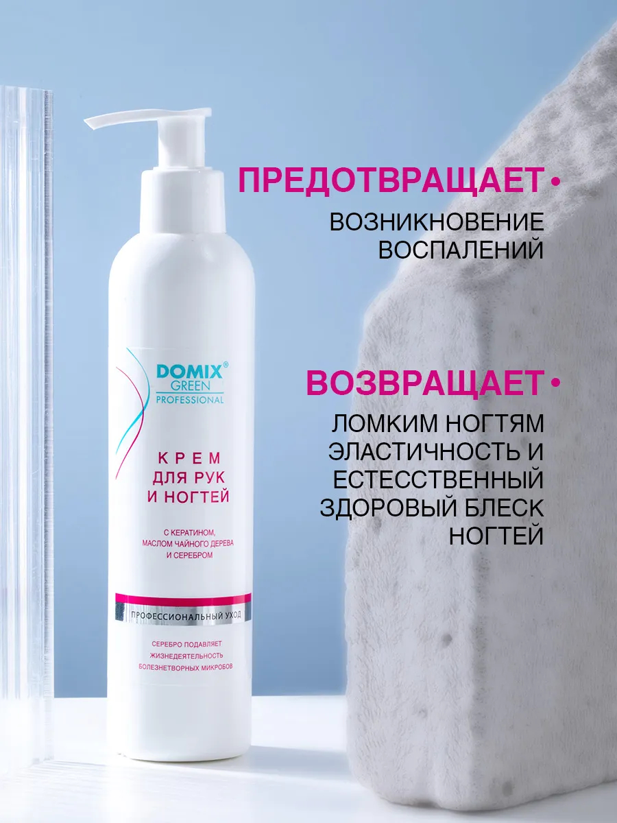 Крем для рук и ногтей с кератином, маслом чайного дерева и коллоидным серебром от DOMIX увлажняет кожу, быстро заживляет порезы, укрепляет тонкие и слабые ногтевые пластины.