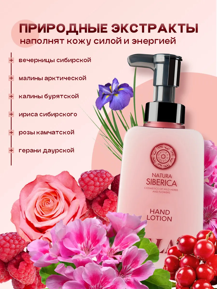 Aqua with infusions of Sorbus Aucuparia Fruit ExtractWH (экстракт рябины сибирской), Arctostaphylos Uva Ursi Leaf ExtractWH (экстракт медвежьей ягоды), Larix Sibirica Needle ExtractWH (экстракт лиственницы сибирской) Rosa Kamchatica Fruit ExtractWH (экстракт розы камчатской), Hesperis Sibirica Flower ExtractWH (экстракт вечерницы сибирской), Geranium Davuricum ExtractWH (экстракт герани даурской) , Rhodiola Rosea Root Extract* (экстракт родиолы розовой), Calendula Officinalis Flower Extract* (экстракт календулы лекарственной), Rosa Davurica Leaf Extract* (экстракт даурской розы), Iris Sibirica Root Extract* (экстракт ириса сибирского), Viburnum Burejaeticum Leaf Extract* (экстракт калины бурятской), Rubus Arcticus Fruit Extract* (экстракт малины арктической); Cetearyl Alcohol, Glyceryl Stearate, Stearic Acid, Palmitic Acid, Glycerin, Cyclopentasiloxane, Isopropyl Palmitate, Helianthus Annuus Seed Oil, Sodium Cetearyl Sulfate, Xanthan Gum, Sodium Нydroxide, Benzyl Alcohol, Potassium Sorbate, Sodium Benzoate, Parfum, Citronellols, Coumarin, Cyclamen Aldehyde, Hexyl Cinnamal, Hexyl Salicylate.
