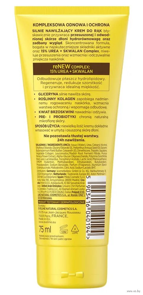 Глубоко увлажняющий крем для рук с комплексом 15% urea и склаван мгновенно впитывается в кожу, обеспечивая ей соответствующий уровень увлажнения.