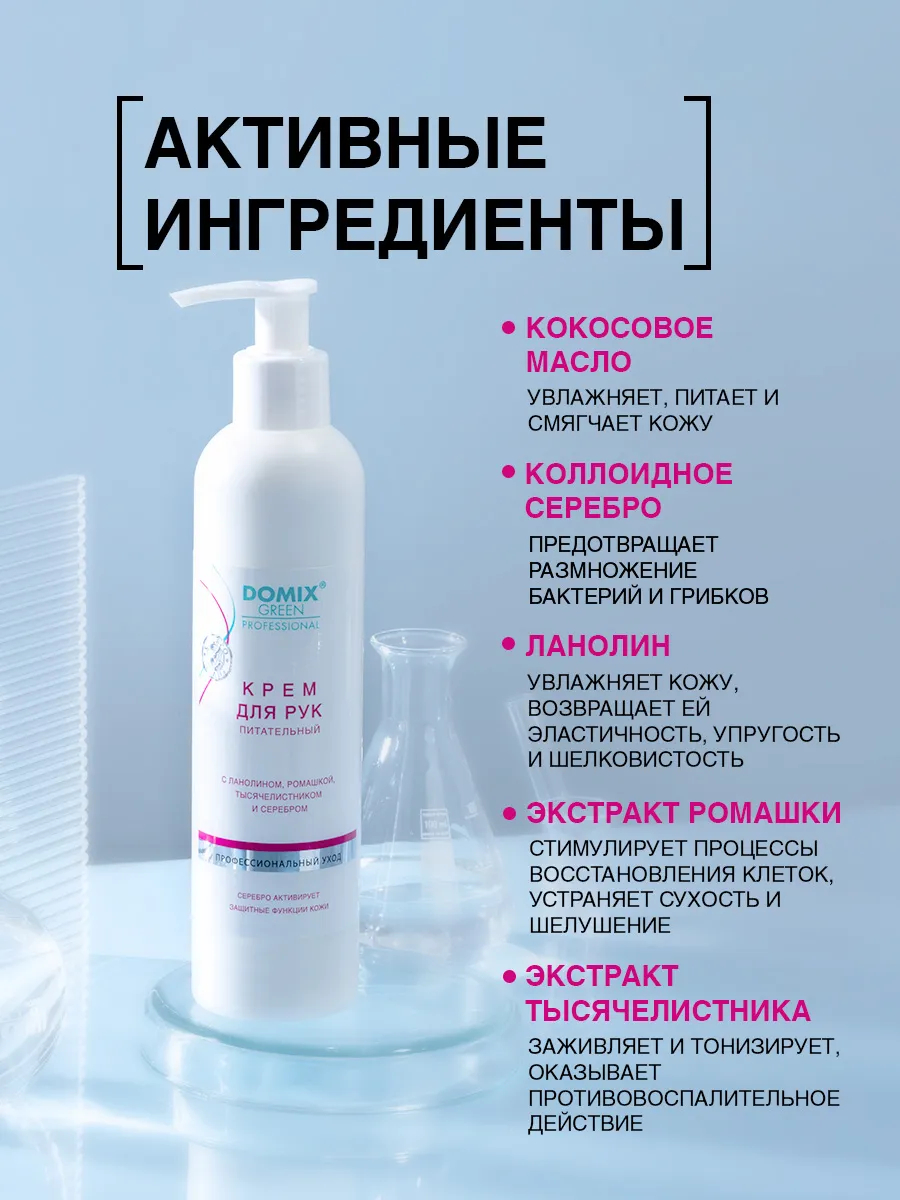 Экстракт ромашки и тысячелистника насыщает кожу рук витаминами. Наносеребро серебро обладает заживляющим действием и блокирует размножение вредных микробов.