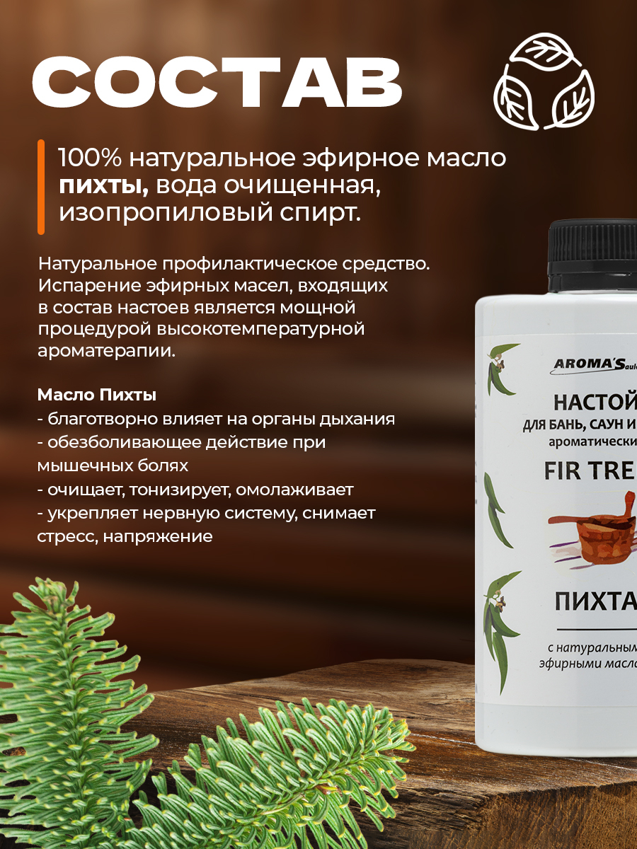 Это натуральное современное косметическое и профилактическое средство, используемое во время посещения бани или сауны. Простейший способ применения настоя делает его доступным для абсолютно любого любителя настоящего пара. Применение полностью натуральных природных компонентов сделает приём паровой процедуры не просто ароматным и приятным, но и полезным для здоровья, т.к. испарение натуральных эфирных масел, входящих в состав настоев фактически является мощной процедурой высокотемпературной ароматерапии. Также настои хорошо применять в процессе процедуры кедровой бочки. За счет натуральных компонентов, которые насыщают пар в этом процессе и оказывают положительное воздействие на организм человека. Высокая температура, которая поддерживается внутри фитобочки, а также насыщенный целебный пар, действуют на организм человека со всех сторон, тем самым, осуществляя многопрофильную очистку организма от шлаков.
