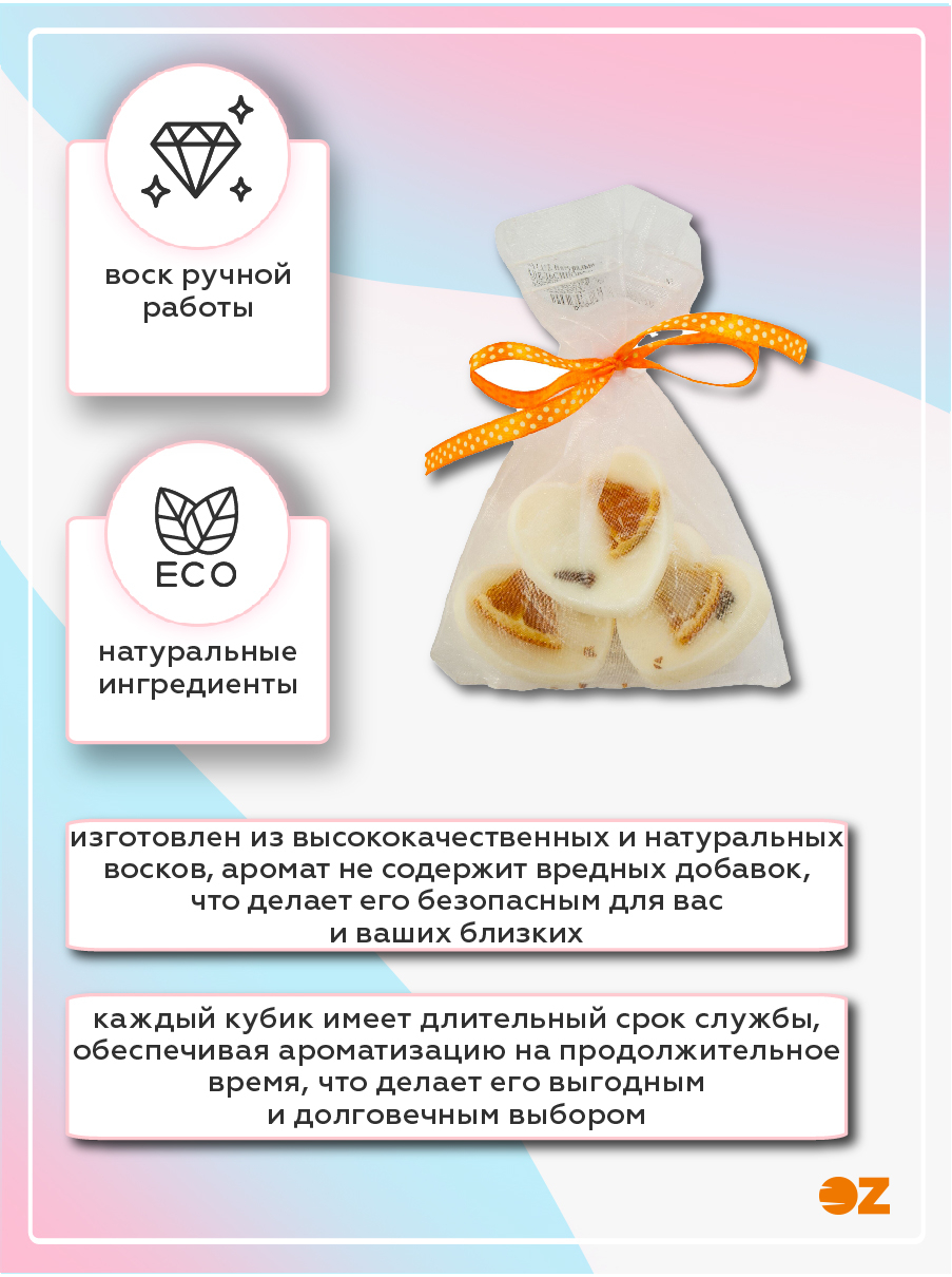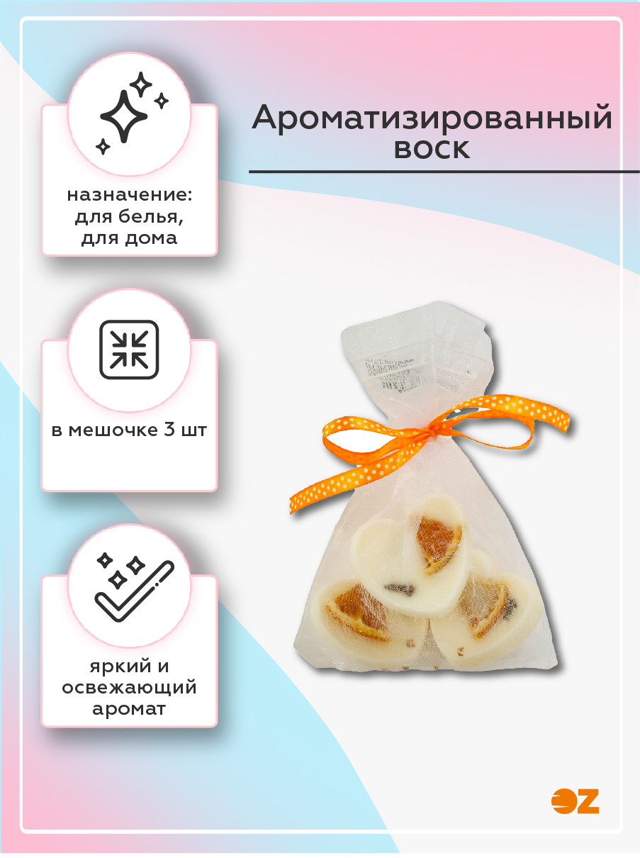 В набор входит ароматизированный воск (3 шт), мешочек из органзы.