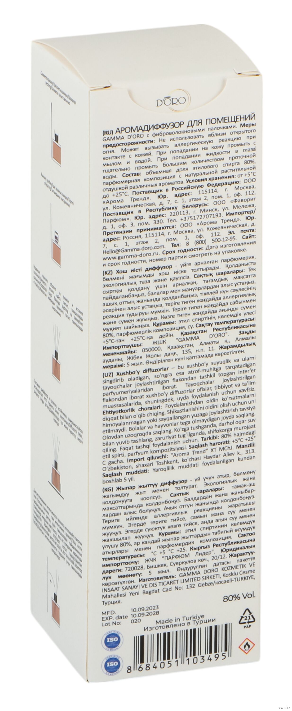 | Изготовитель | Gamma Doro Kozmetik Ve İnsaat Sanayi Ve Dis Ticaret Limited Sirketi, Merkez Mah. Yaren Sk. Bila Apt No: 11 A Ic Kapi No: 1 Kagithane, Istanbul, Turkey |