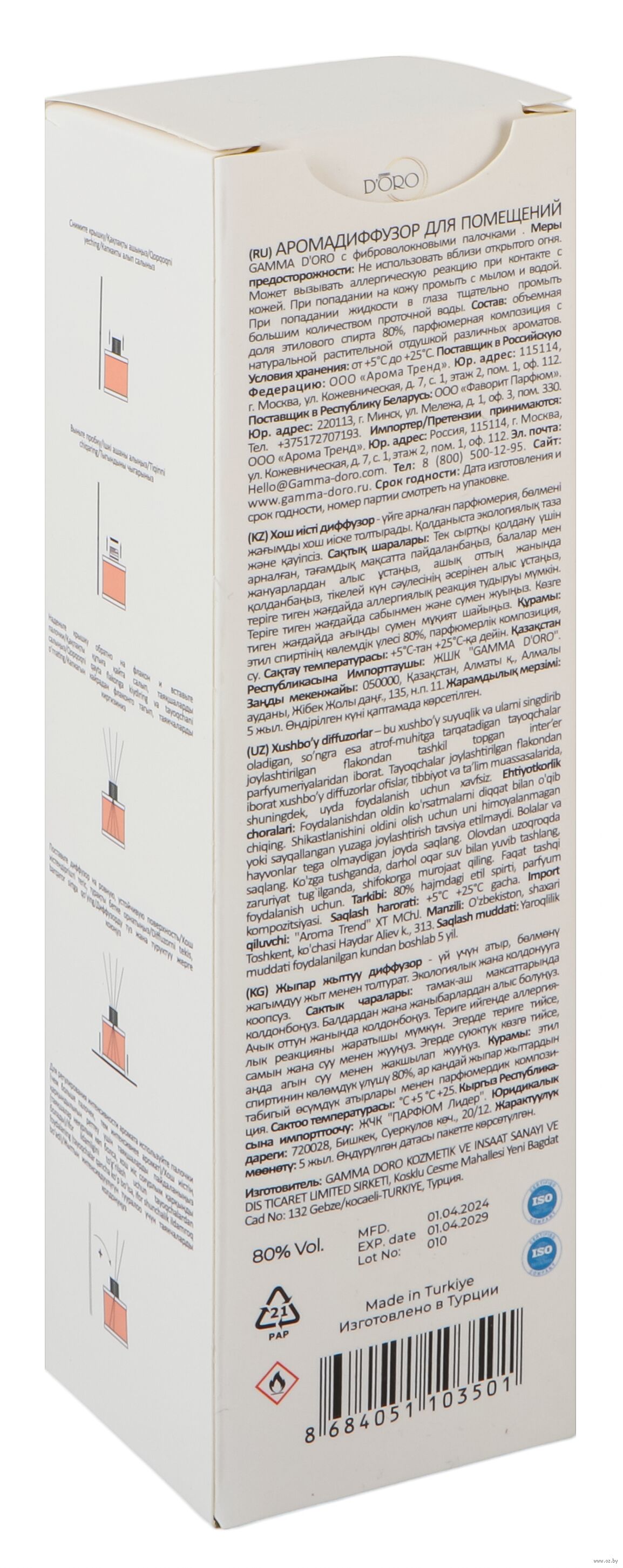 | Изготовитель | Gamma Doro Kozmetik Ve İnsaat Sanayi Ve Dis Ticaret Limited Sirketi, Merkez Mah. Yaren Sk. Bila Apt No: 11 A Ic Kapi No: 1 Kagithane, Istanbul, Turkey |
