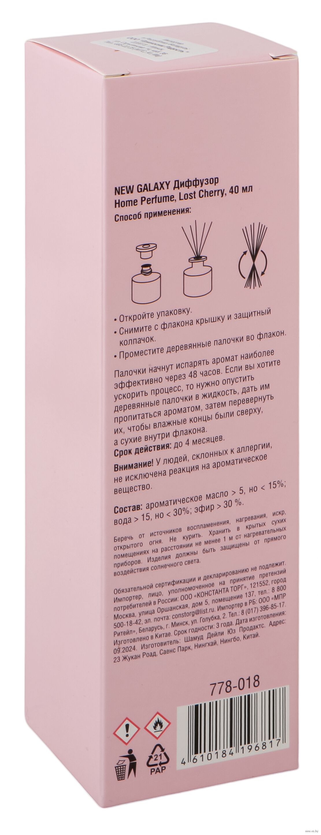 | Импортер | ООО «Приносим радость», 220073, г. Минск, ул. Скрыганова, д. 14, каб. 36. |