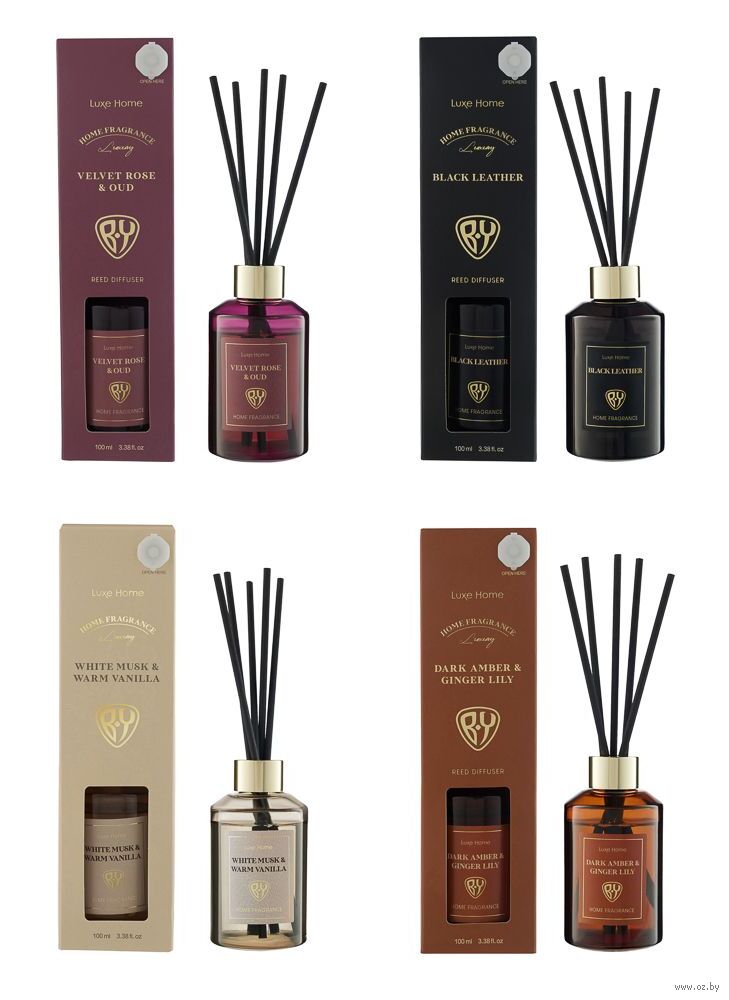 Диффузор ароматический "White Musk and Warm Vanilla, Black leather, Velvet Rose, Dark Amber" (100 мл)