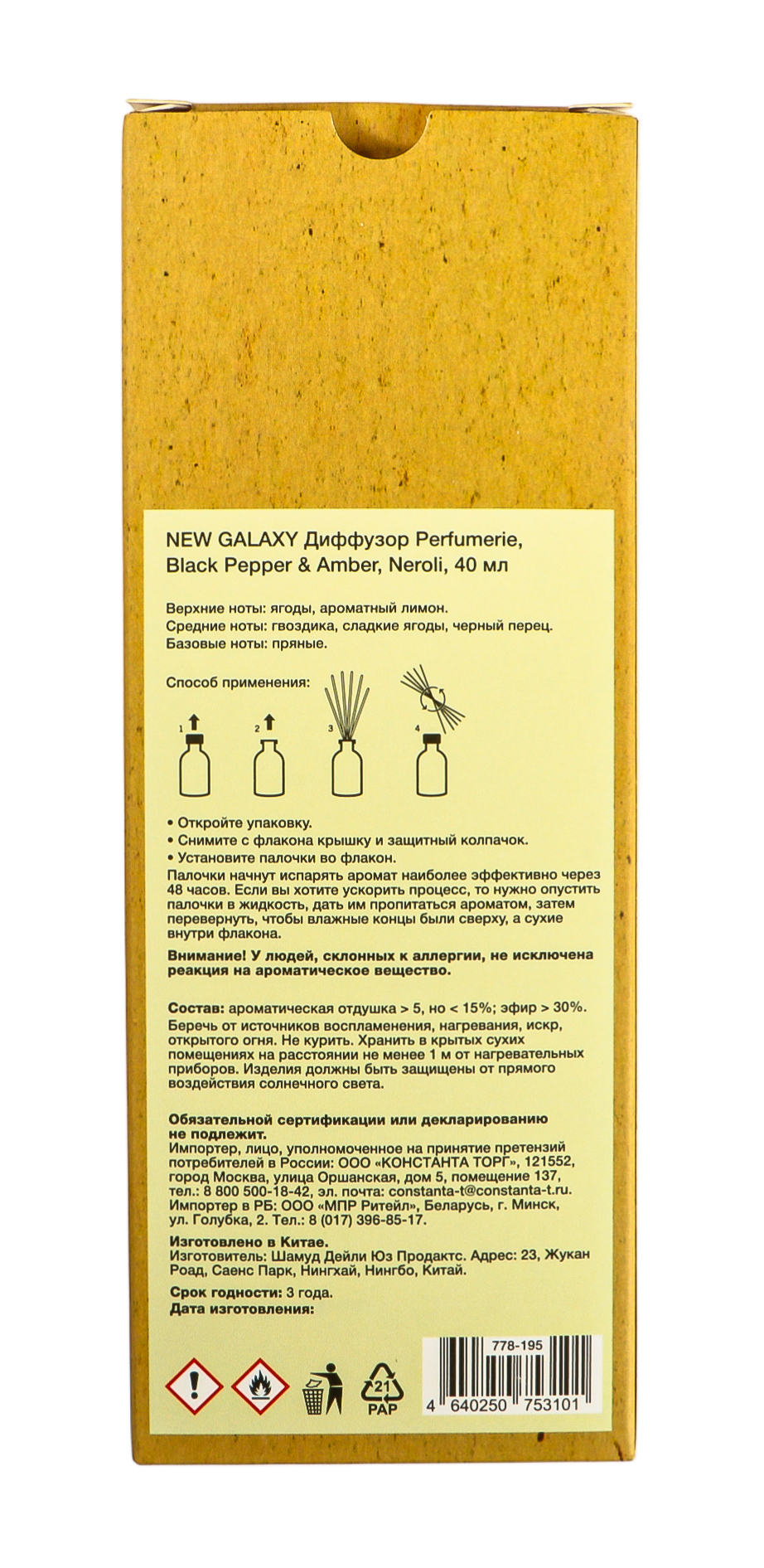 Диффузор "Perfumerie Black Pepper and Amber, Neroli" – стильный и функциональный аксессуар для вашего дома. Создаст уютную атмосферу и наполнит помещение приятным ароматом.