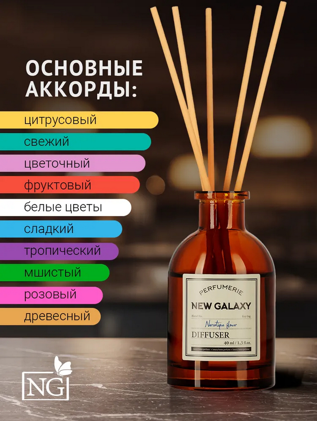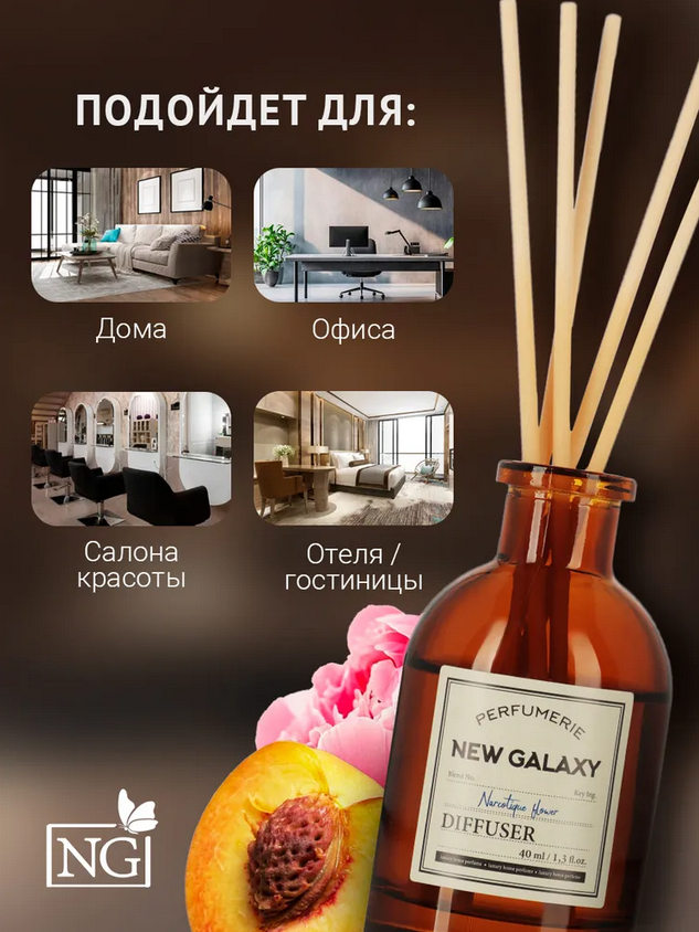 Палочки мягко и равномерно распространяют аромат по всей площади помещения, даря ощущение гармонии и уюта. Отличный выбор для гостиной, спальни, а также офисов и бутиков.