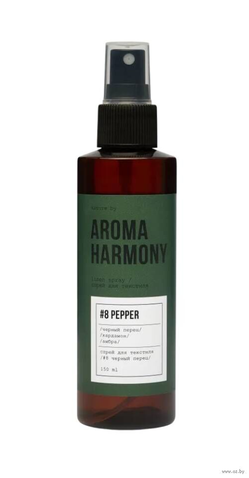 Погрузитесь в мир изысканных ароматов с Aroma Harmony №8 "Pepper". Этот уникальный спрей создан для тех, кто ценит гармонию и утонченность в каждой детали своего дома. Сочетание восьми благородных ингредиентов – черного перца, элеми, бергамота, кардамона, кедра, пачули, корицы, амбры и ванили – создает многогранную композицию, которая наполнит пространство теплом и уютом.