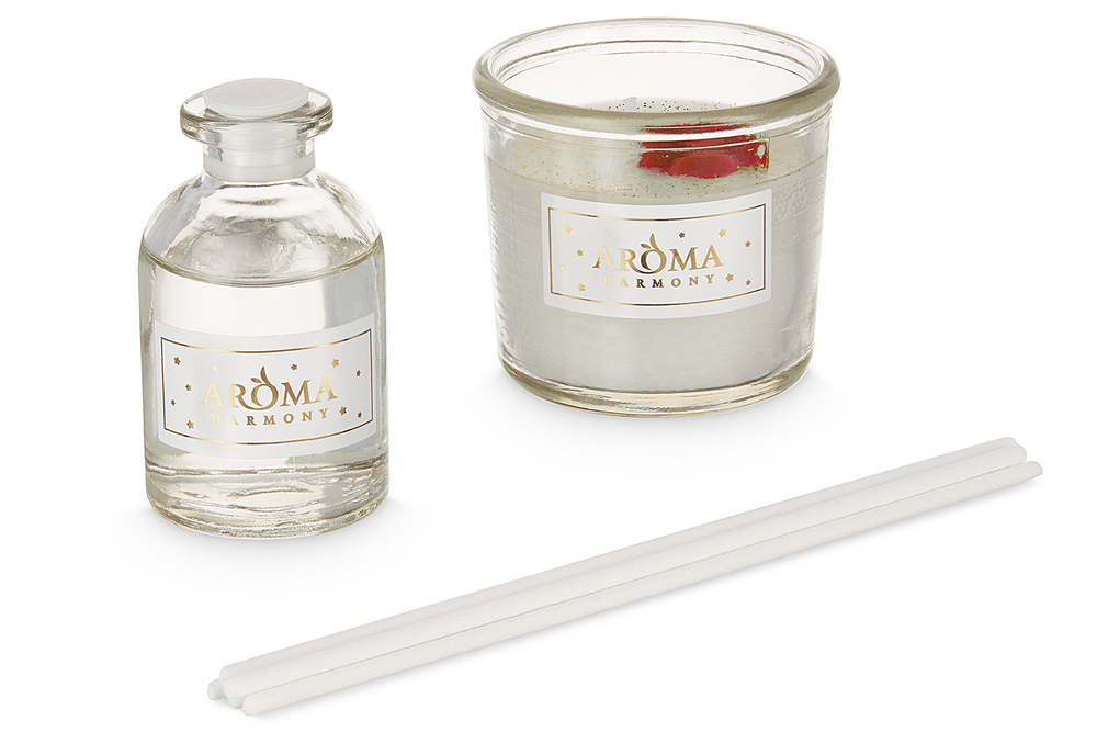 Состав набора: диффузор ароматический 30 мл; палочки – 5 шт., свеча ароматическая 60 гр.