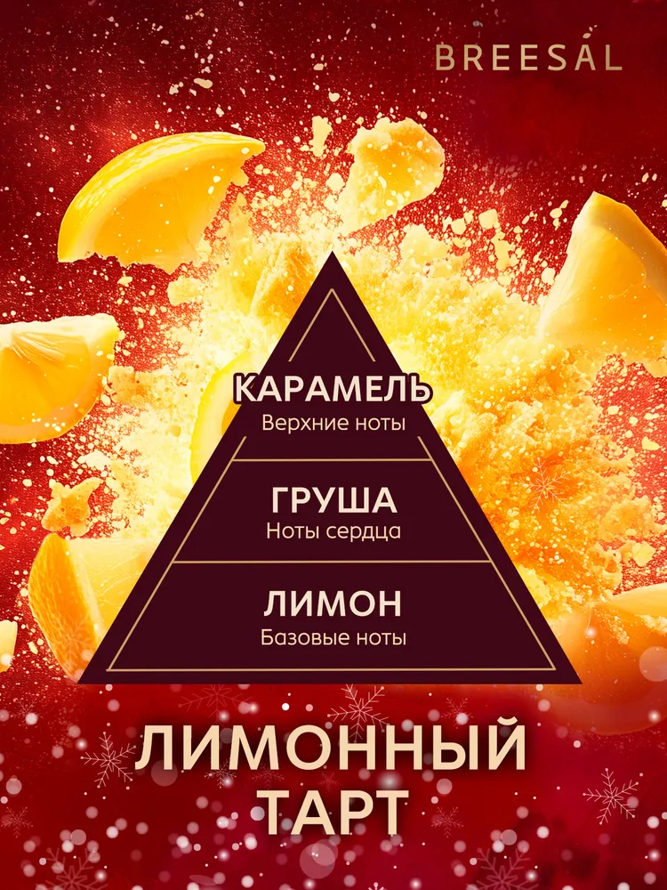 Аромат "Лимонный тарт" от Breesal Passion – это мгновения радости и легкости, наполненные солнечными воспоминаниями о летних днях. Ощутите магию свежести и позвольте аромату вдохновить вас на новые свершения, наполняя ваш дом светом и положительными эмоциями!