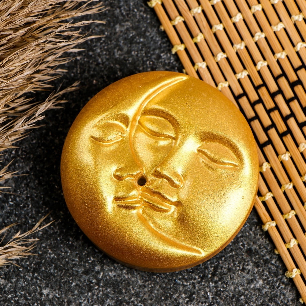 Подставка для благовоний "Солнце и месяц", под золото.