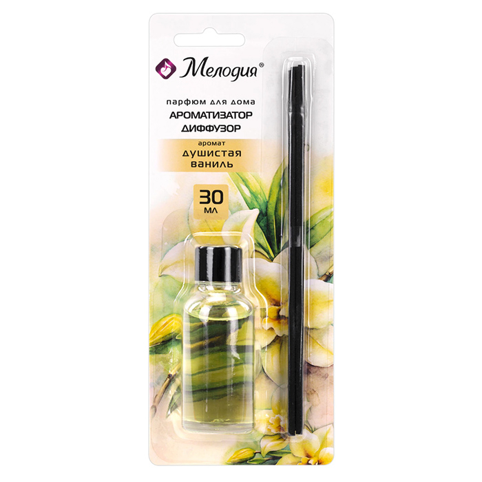 Уникальная формула ароматического диффузора "Мелодия" создает комфортную атмосферу, медленно заполняя помещение приятным ароматом и помогая расслабиться.