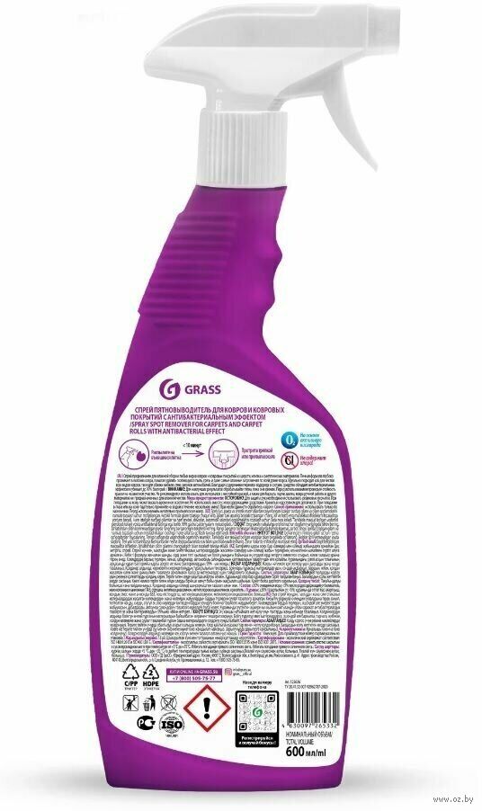 Для влажной уборки любых видов ковров и ковровых покрытий из шерсти, хлопка и синтетических материалов. Пенная формула глубоко проникает в волокна ковра, помогая удалить скопившуюся пыль, грязь и даже самые сложные загрязнения по всей длине ворса. Идеально подходит как для чистки всех видов ковров, так и для обивки мебели, стен, салонов автомобилей. Благодаря содержанию перекиси водорода в составе, средство обладает антибактериальным эффектом и убивает до 99% бактерий.