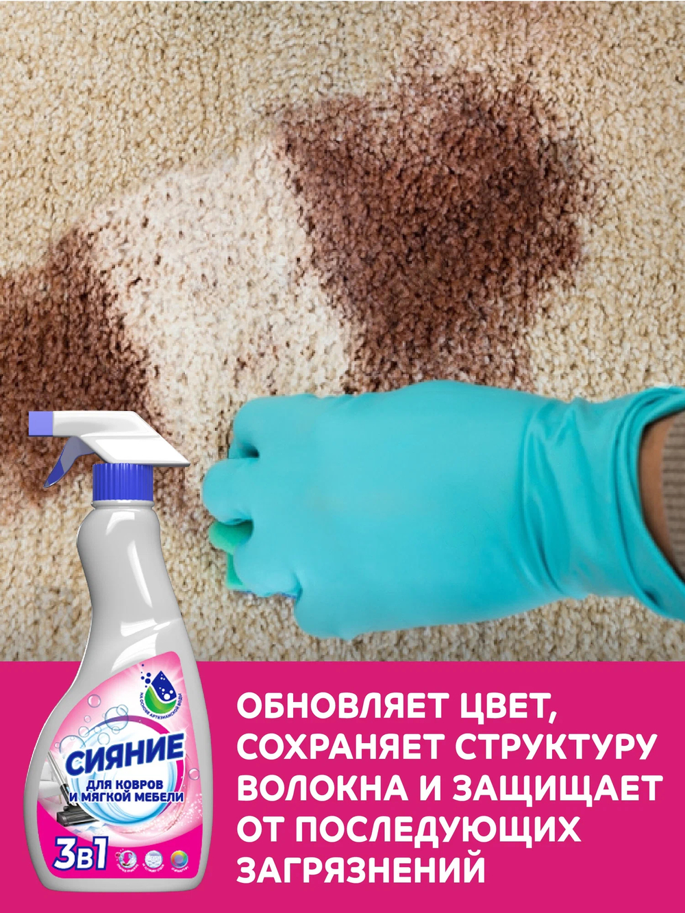 Чистящее средство "Сияние" легко и быстро очистит ковры, мягкую мебель, салон автомобиля и любые текстильные покрытия.