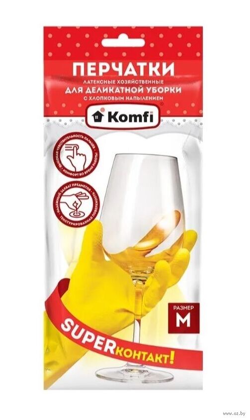 Перчатки хозяйственные латексные "Для деликатной уборки" (М; 1 пара)