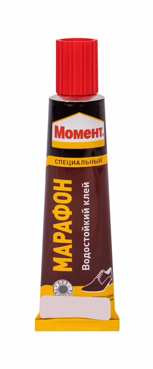 Момент "Марафон" является специальным обувным клеем, отлично подходящим для починки любых видов обуви из различных материалов в любых комбинациях.