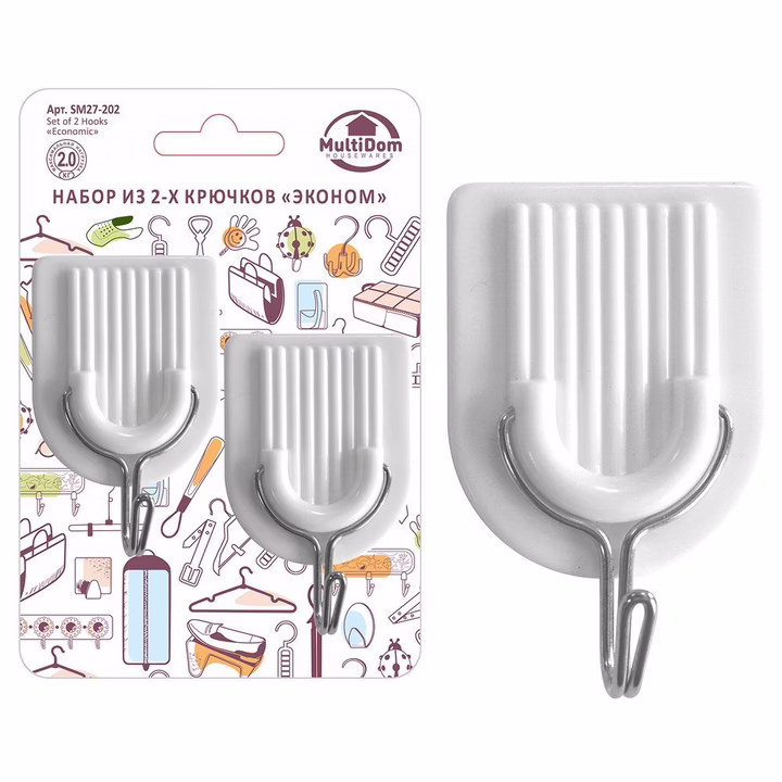 Пластмассовые крючки используются для приклеивания на различные стеклянные, пластмассовые и другие типы поверхностей. С обратной стороны располагается самоклеящаяся плёнка, позволяющая надёжно зафиксировать изделие. Перед креплением обезжирьте поверхность.