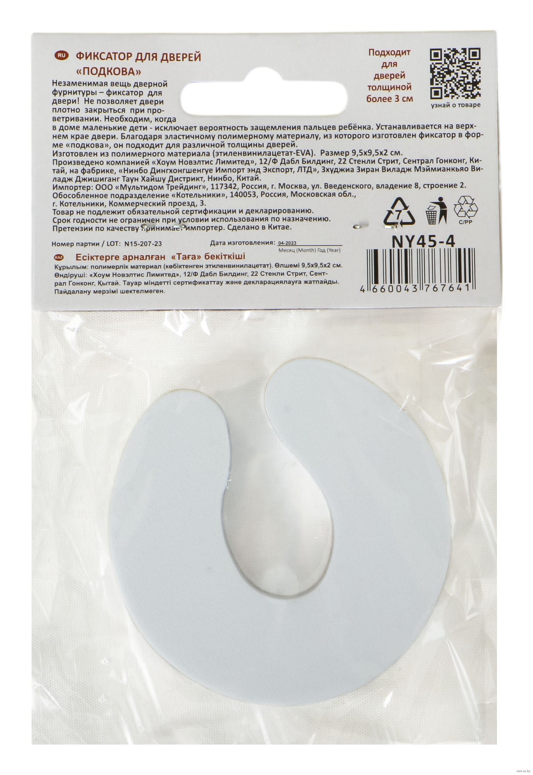 Удобная и практичная вещь – фиксатор для дверей "Подкова" станет вашим полезным помощником. Приспособление крепится на межкомнатные двери или створки окон, позволяет держать полотно приоткрытым для проветривания или получения дополнительного источника света. Также фиксатор бережёт обои, исключает вероятность защемления пальцев, особенно если дома есть маленькие дети. Изделие изготовлено из эластичного полимерного материала, имеет форму подковы и крепится на двери различной толщины. Изготовлен из полимерного материала (этиленвинилацетат-EVA).
