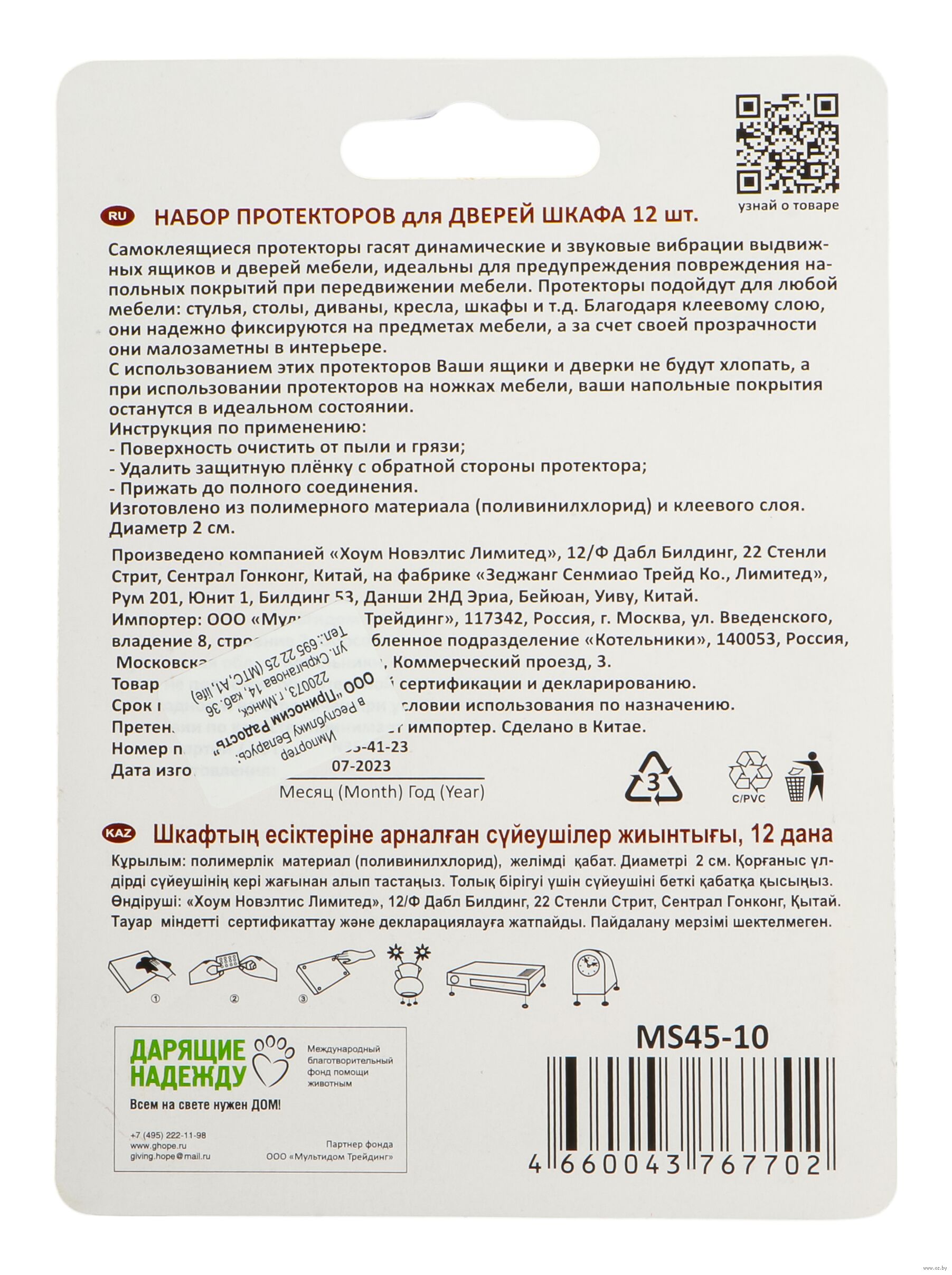 | Импортер | ООО «Приносим радость», 220073, г. Минск, ул. Скрыганова, д. 14, каб. 36. |