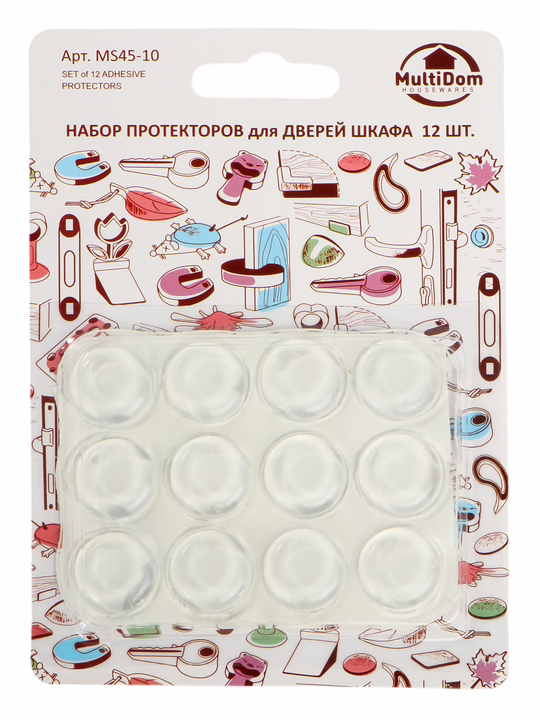 Самоклеящиеся протекторы гасят динамические и звуковые вибрации выдвижных ящиков и створок мебели. Набор протекторов для дверей шкафа "Эконом" предупреждает повреждения напольных поверхностей при передвижении предметов мебели и постоянном воздействии ножек стульев и табуреток. Приспособления надёжно фиксируются на клеевой слой, практически незаметны в интерьере. Использование протекторов предотвратит хлопанье дверей и створок, что снизит уровень шума и продлит сроки эксплуатации полотна. В наборе 12 шт., изготовленных из полимерного материала (поливинилхлорида) и клеевого слоя. Диаметр 2 см.