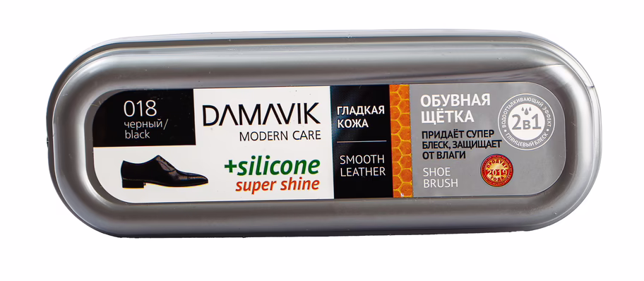 Обувная щетка для ухода за обувью из гладкой кожи. Новая формула обувной щетки с силиконом легко создаёт супер блеск. Мгновенно придаёт обуви обновленный вид надолго. Защищает от влаги.