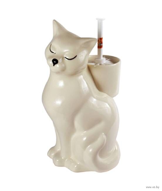 Подставка для унитазного ерша керамическая "Кошка белая".