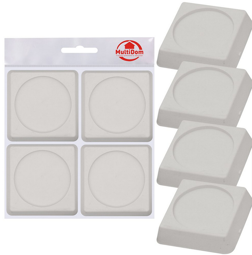 Применение подставок позволяет значительно снизить нагрузку ножек техники на напольное покрытие, керамическую плитку, деревянные полы, а также предотвращает скольжение стиральной машины при работе в режиме отжима. Снижение вибрации при работе техники достигается оптимальной формой подставок и использованием высокопрочного материала.