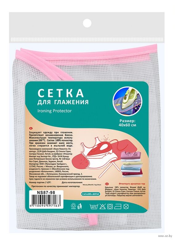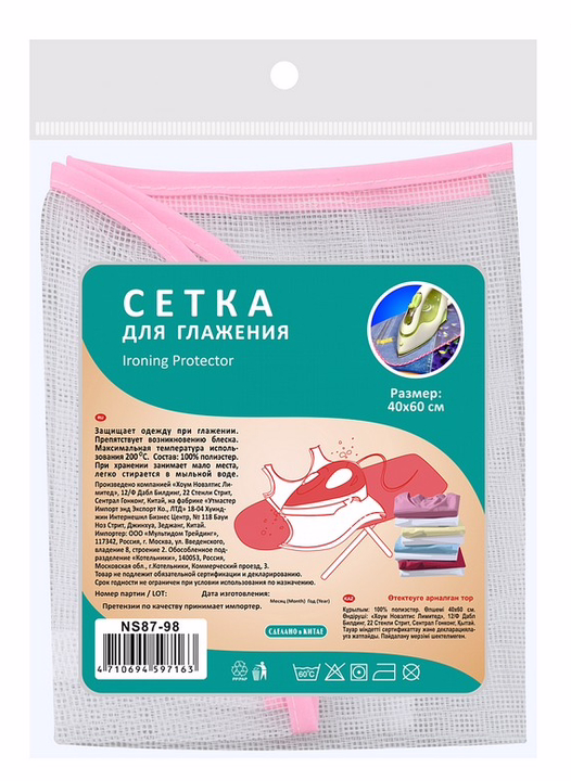 Использование сетки не составляет труда – расстелите одежду на гладильной доске, накройте сеточкой и приступайте к глажке. При хранении занимает мало места, легко стирается в мыльной воде.