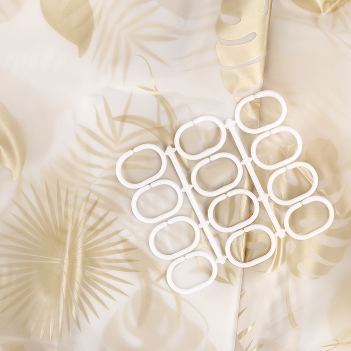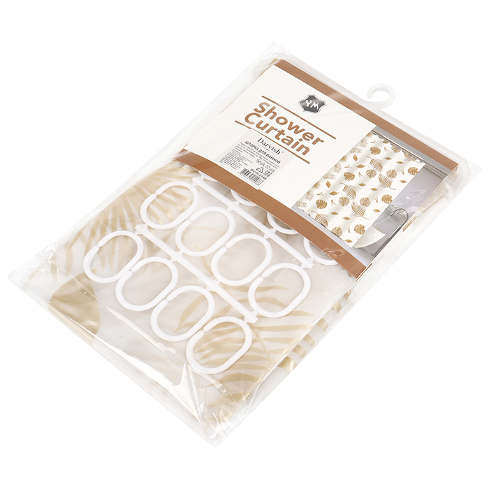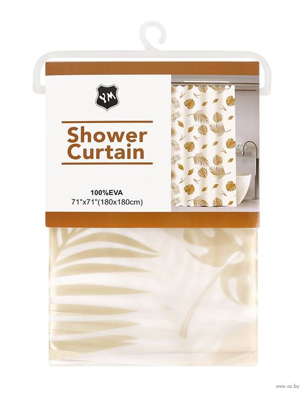 В комплекте: штора 180х180 см – 1 шт., пластмассовые кольца – 12 шт.