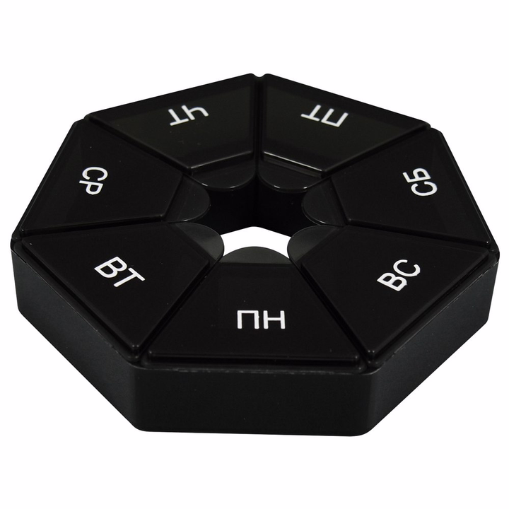 Предназначена для хранения, переноски таблеток, витаминов и БАД. Таблетницу удобно брать с собой, что позволит не забыть в течение дня принять нужный препарат. Позволит разделить препараты на 7 дней. Каждая секция подписана днем недели. Один раз заполнив таблетницу лекарствами вы можете не думать об этом всю неделю.