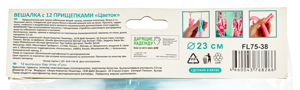 Компактная вешалка с прищепками используется для сушки вещей – носков, носовых платочков, белья, тряпочек и салфеточек. Вешалка-сушилка удобна для размещения на кухне, в ванной комнате и на балконе.