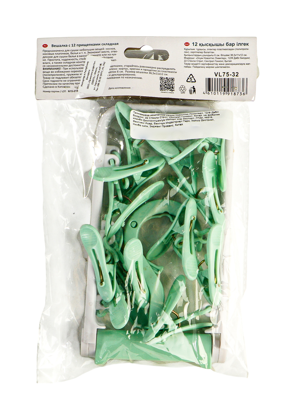 Изготовлено: корпус, крючки и прищепки из пластмассы (полипропилен), пружины из стали.
