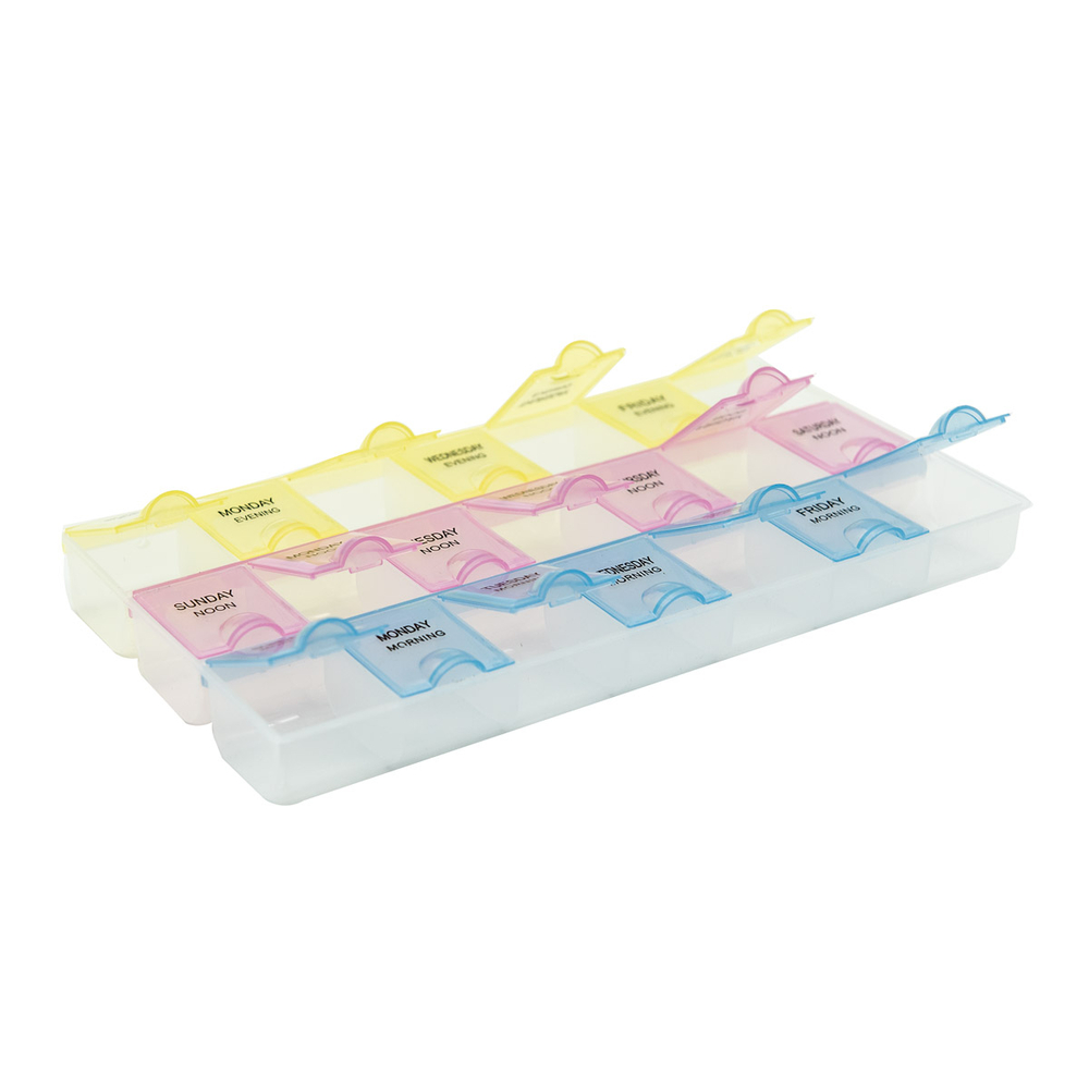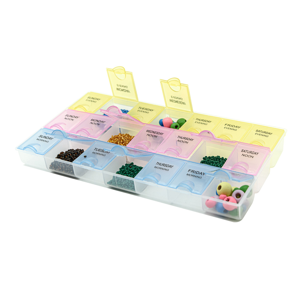 Таблетница на неделю – это не просто полезный аксессуар, а настоящая находка для тех, кто заботится о своем здоровье и регулярно принимает лекарства. Она представляет собой компактный органайзер, разделенный на 21 ячейку, каждая из которых соответствует определенному дню недели и времени приема препаратов: утро, день или вечер. Это позволяет удобно распределить лекарства, витамины и биологически активные добавки (БАДы) по времени суток.