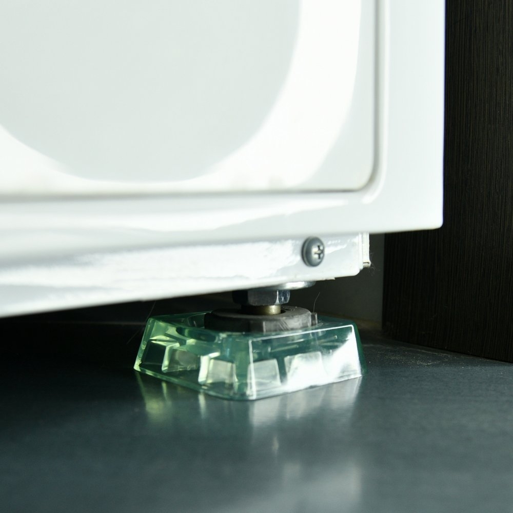 Применение подставок позволяет значительно снизить нагрузку ножек техники на напольное покрытие, керамическую плитку, деревянные полы, а также предотвращает скольжение стиральной машины при работе в режиме отжима. Снижение вибрации при работе техники достигается оптимальной антивибрационных формой подставок и использованием высокопрочного материала.