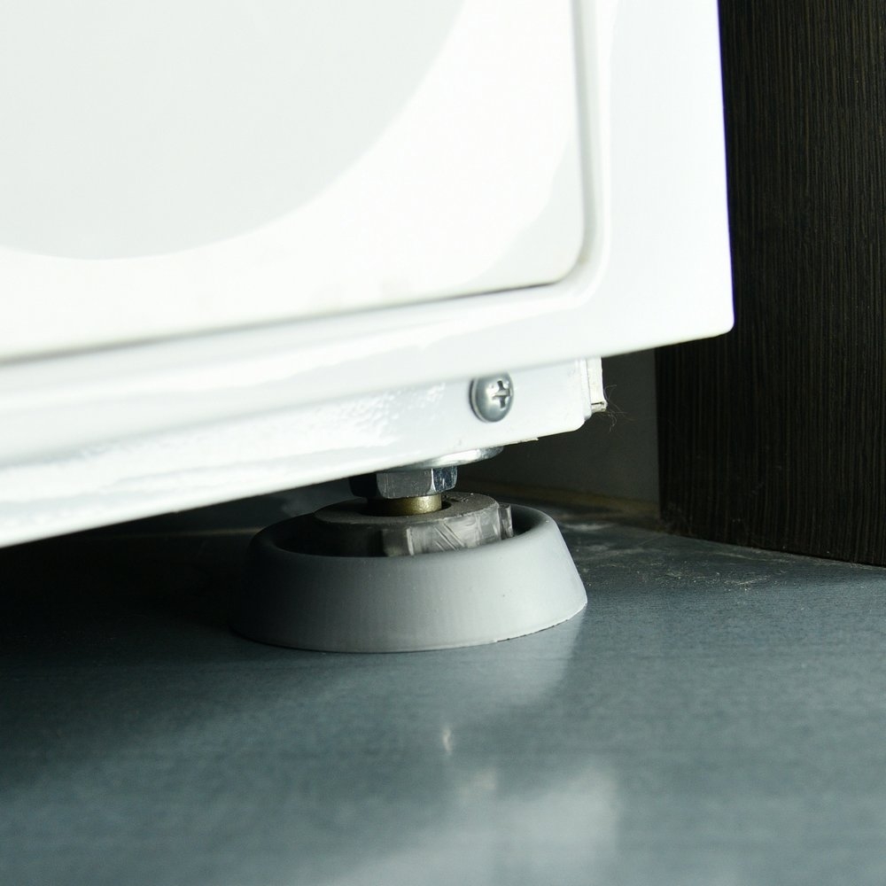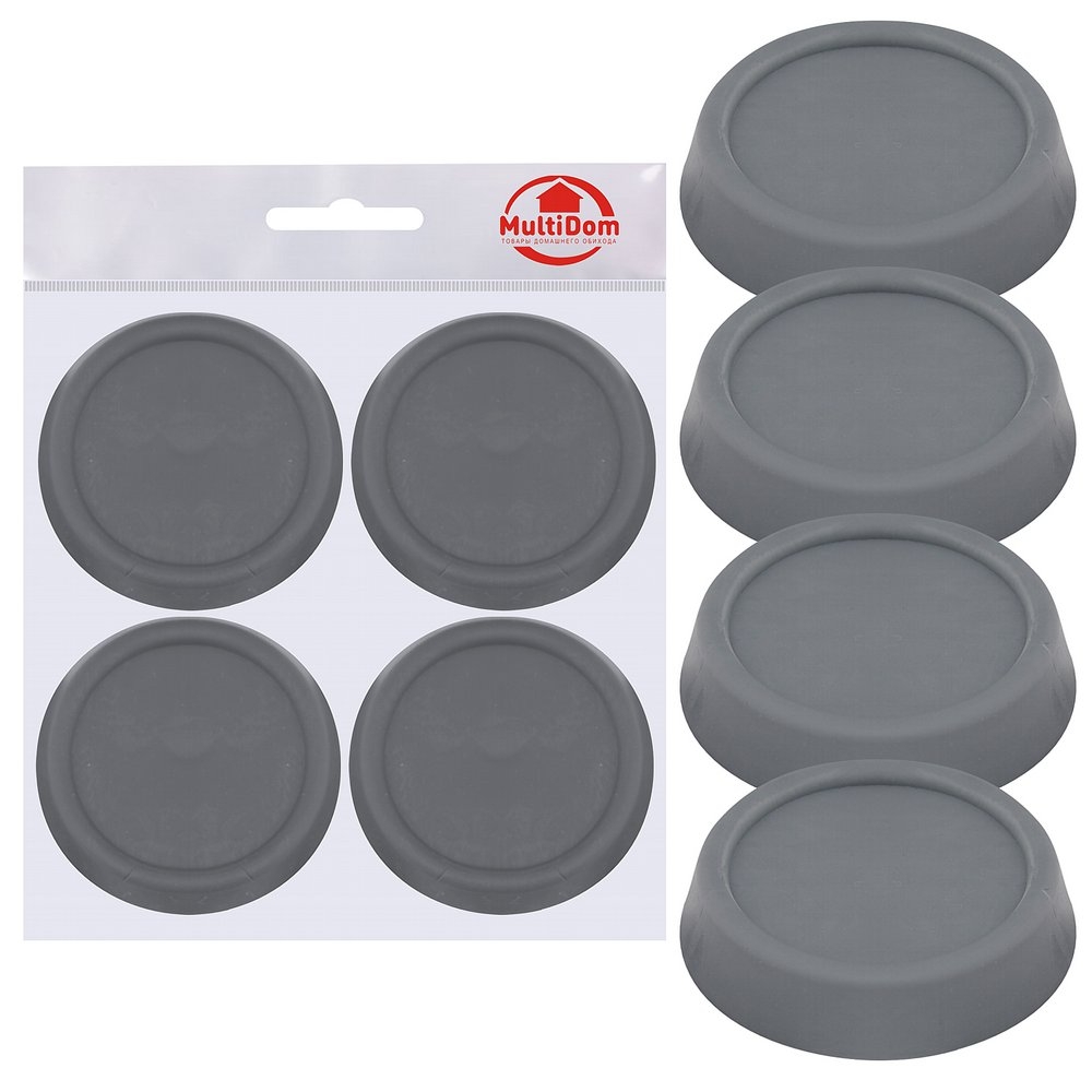 Применение подставок позволяет значительно снизить нагрузку ножек техники на напольное покрытие, керамическую плитку, деревянные полы, а также предотвращает скольжение стиральной машины при работе в режиме отжима. Снижение вибрации при работе техники достигается оптимальной антивибрационных формой подставок и использованием высокопрочного материала.
