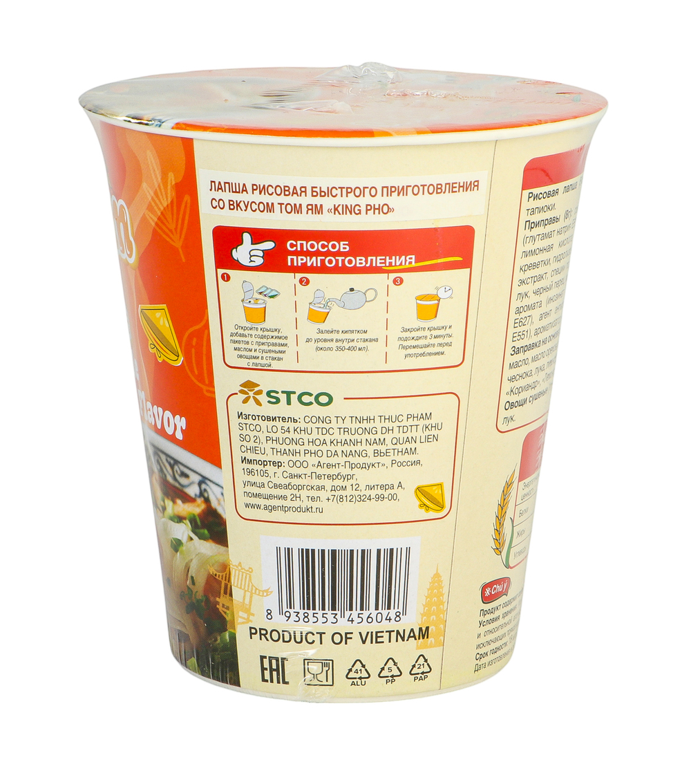 Упакованная в удобный бумажный стакан, рисовая лапша Кинг Фо легко помещается в сумке и идеально подходит для перекуса в дороге или на работе. И что важно – наш стакан экологически чистый и не загрязняет окружающую среду.