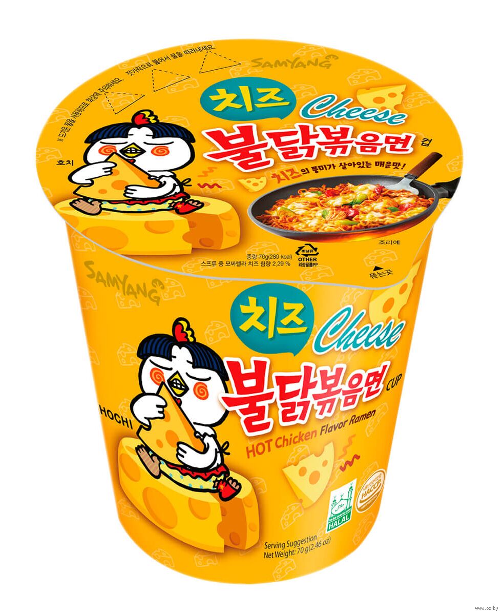 Сублимированная лапша быстрого приготовления со вкусом жаренной курицы и сыра. Качественный и высокоэнергетический продукт с острым вкусом. Пользуется популярностью среди любителей корейских блюд.