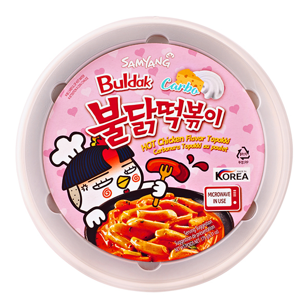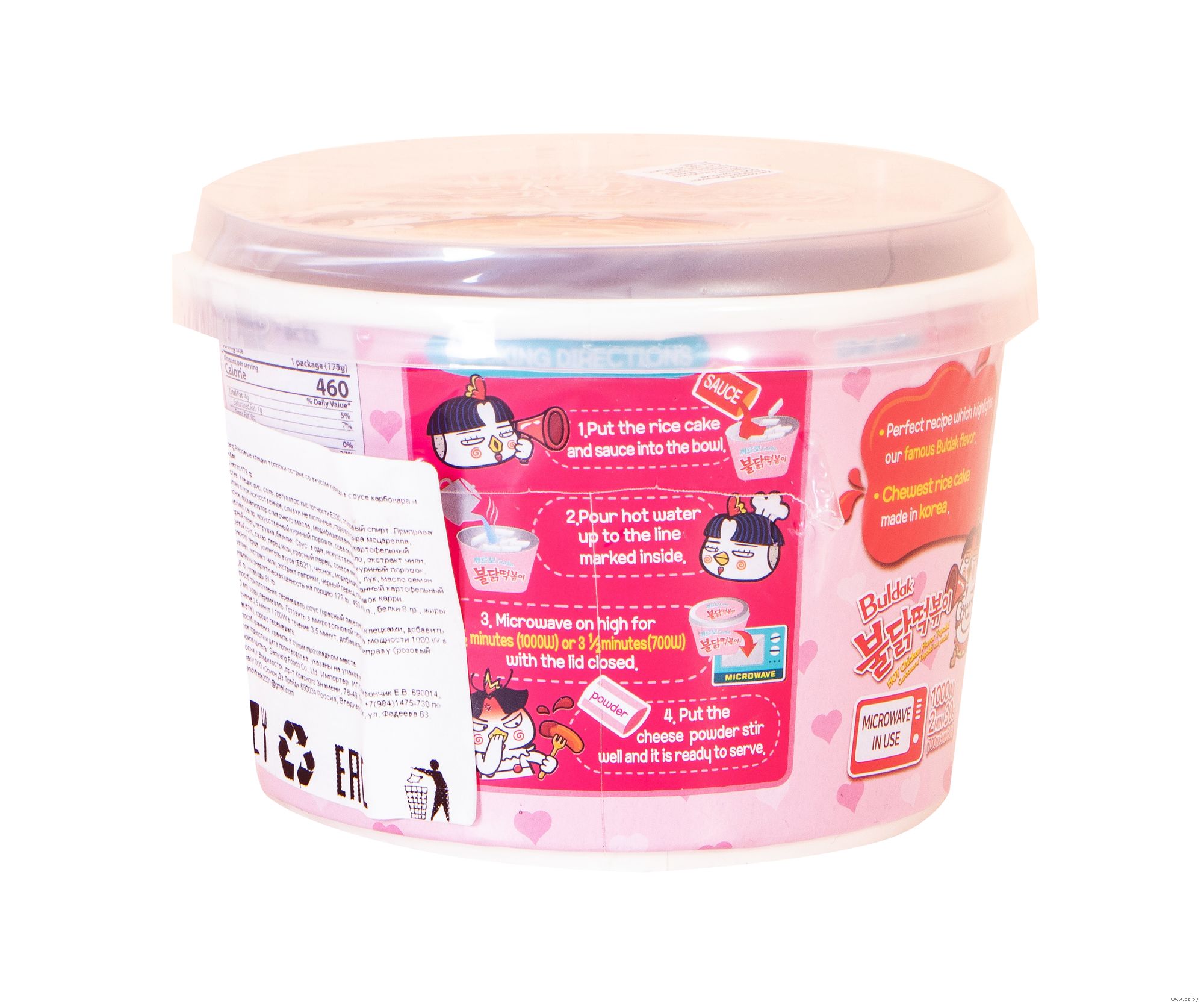 Идеальный компромисс для тех, кто одинаково любит азиатскую и европейскую кухни: розовая чашка пряных ттокпокки Булдак Карбо Samyang! Нежные рисовые палочки превосходно насыщают и обеспечивают порцию энергии, при этом калорийность блюда совсем невелика.