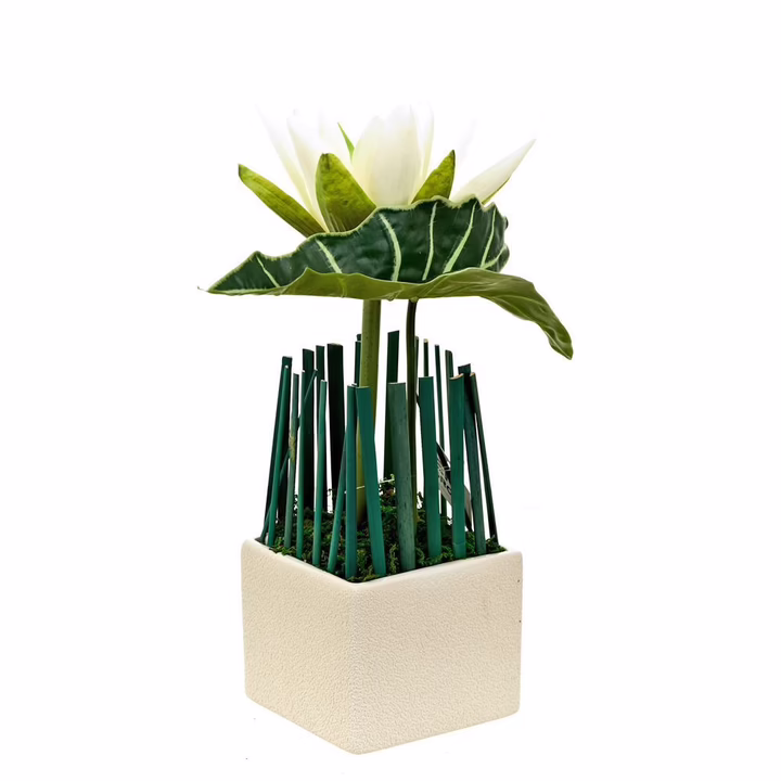 Композиция декоративная с подсветкой. С эффектом натуральных лепестков, в керамическом горшке. Используется в декоративных целях для украшения интерьера.