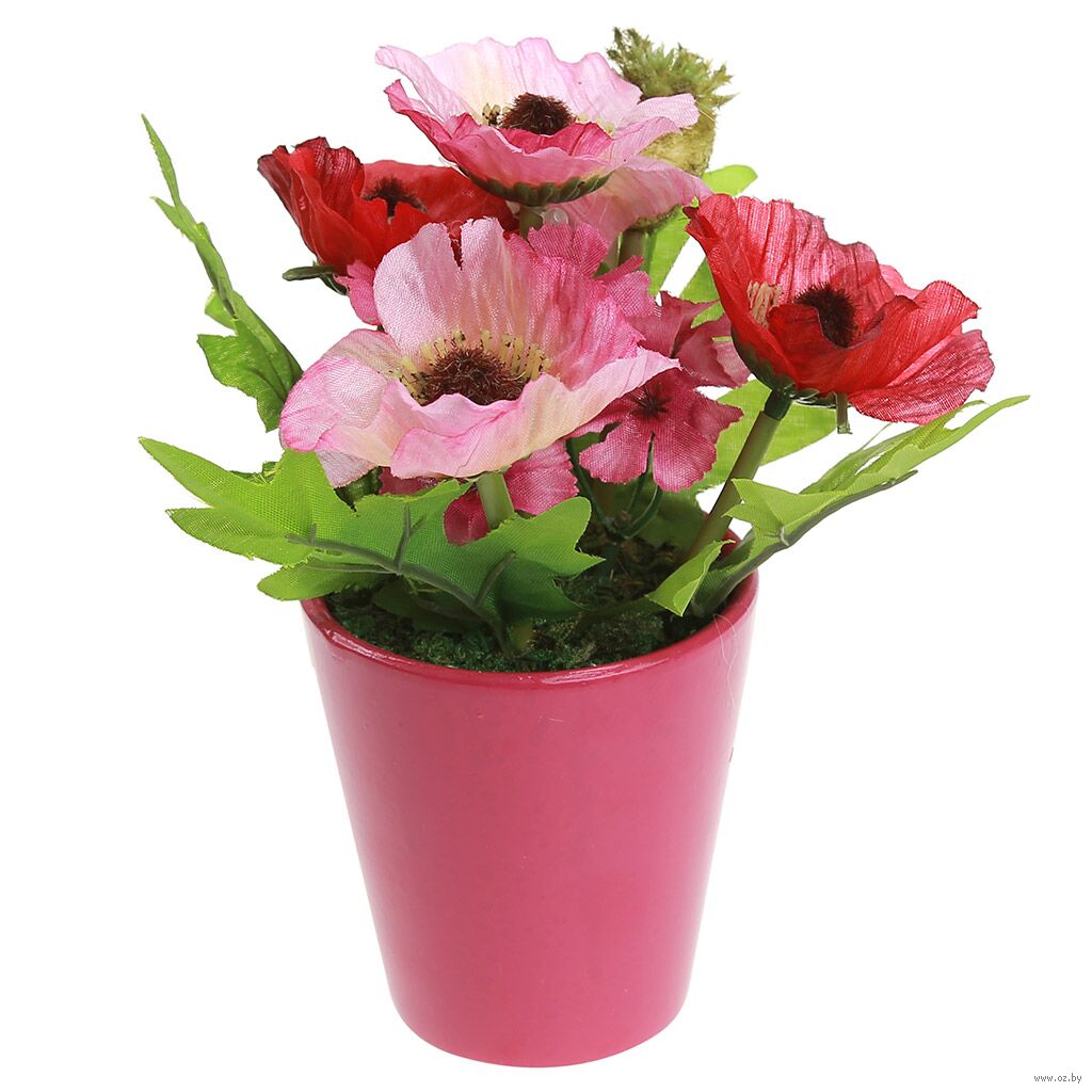 Цветочная композиция "Маки", в керамическом горшочке (7х8 см).