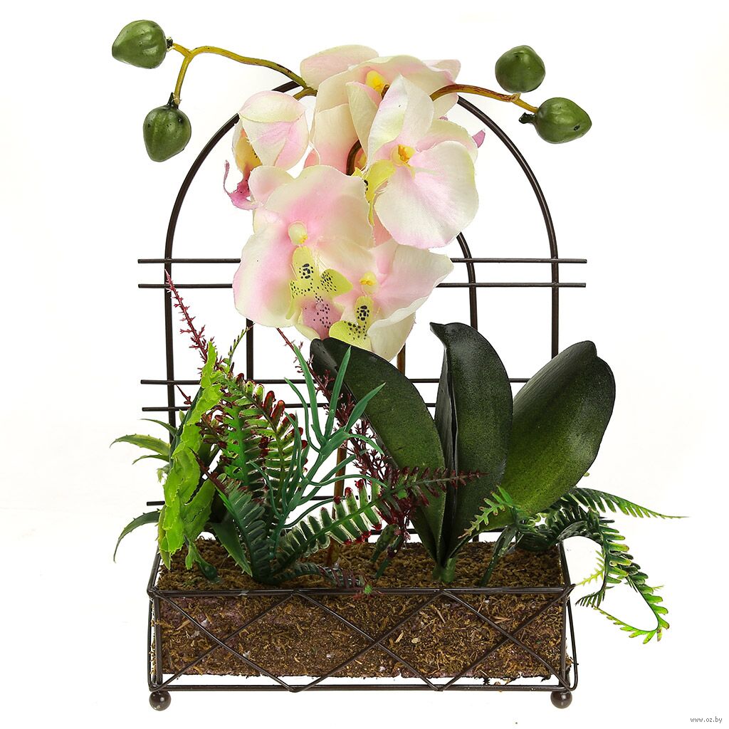 Цветочная композиция "Орхидея", в металлическом кашпо (15х6,5 см).