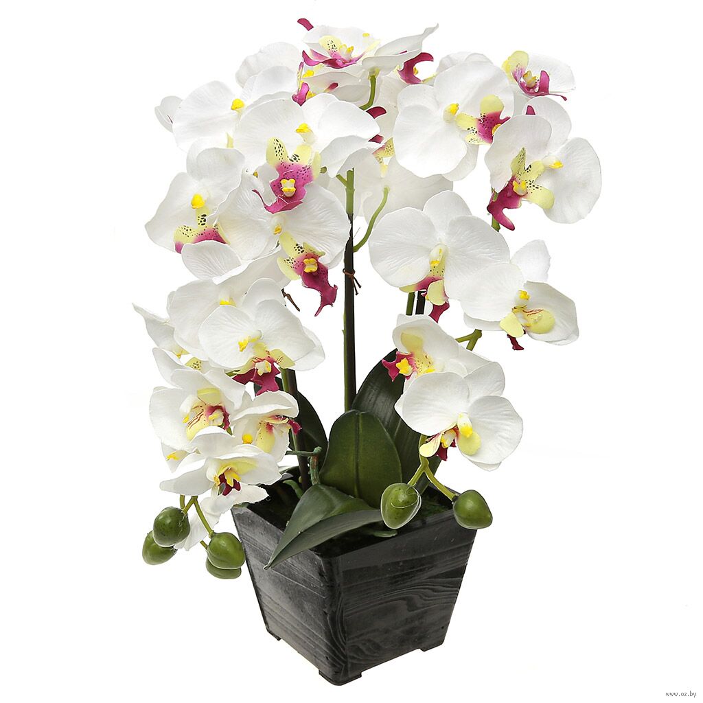 Цветочная композиция "Орхидея", в деревянном кашпо (11,5х11,5 см).