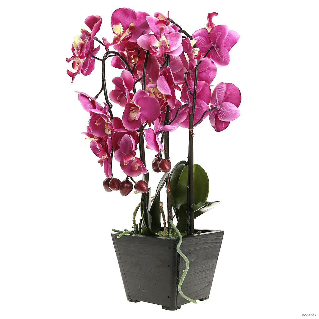 Цветочная композиция "Орхидея", в деревянном кашпо (11,5х11,5 см).